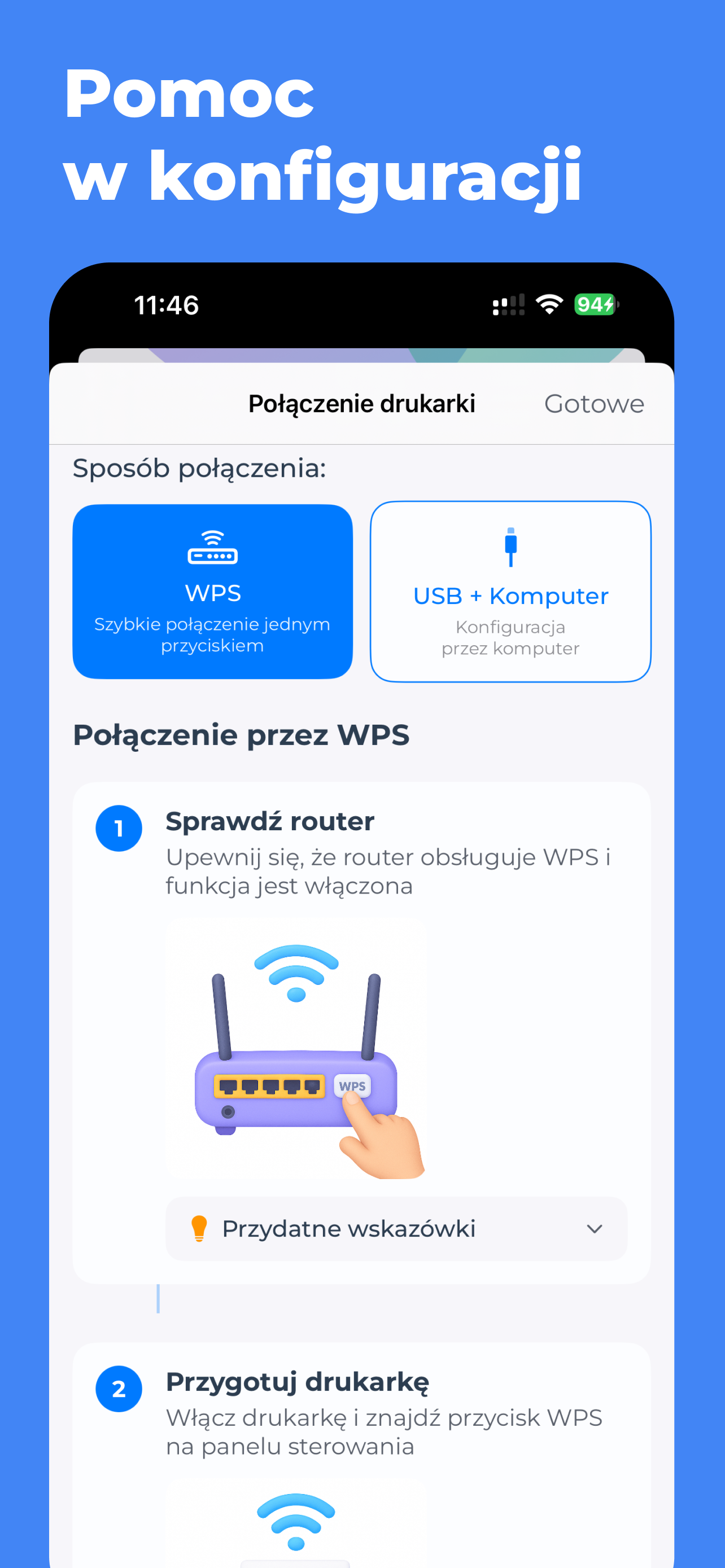 Płynna współpraca z czołowymi markami: HP, Canon, Epson, Brother (i więcej modeli AirPrint). Wystarczy połączyć się z tą samą siecią Wi-Fi i rozpocząć drukowanie.