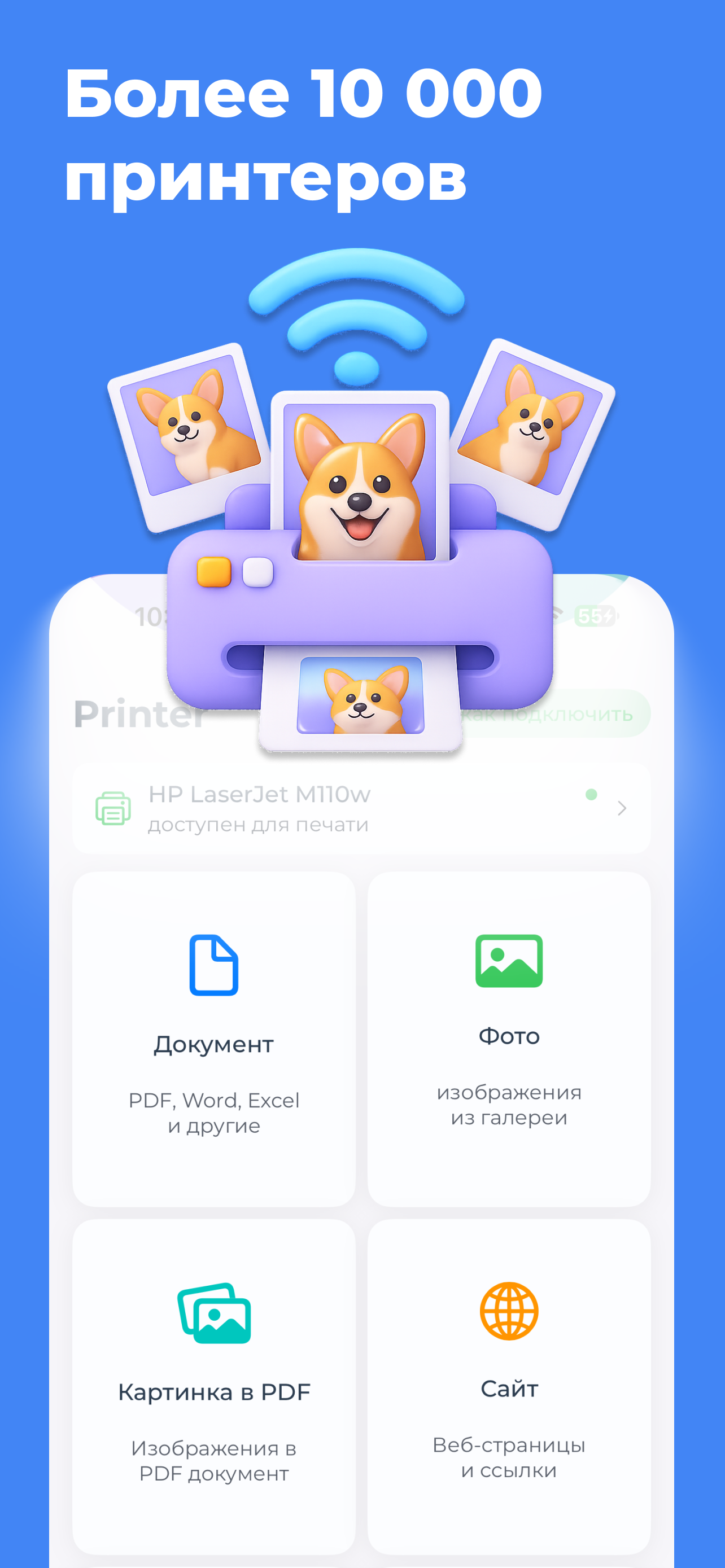Бесшовная работа с ведущими брендами: HP, Canon, Epson, Brother (и другие модели AirPrint). Просто подключитесь к той же Wi-Fi сети и начните печатать.