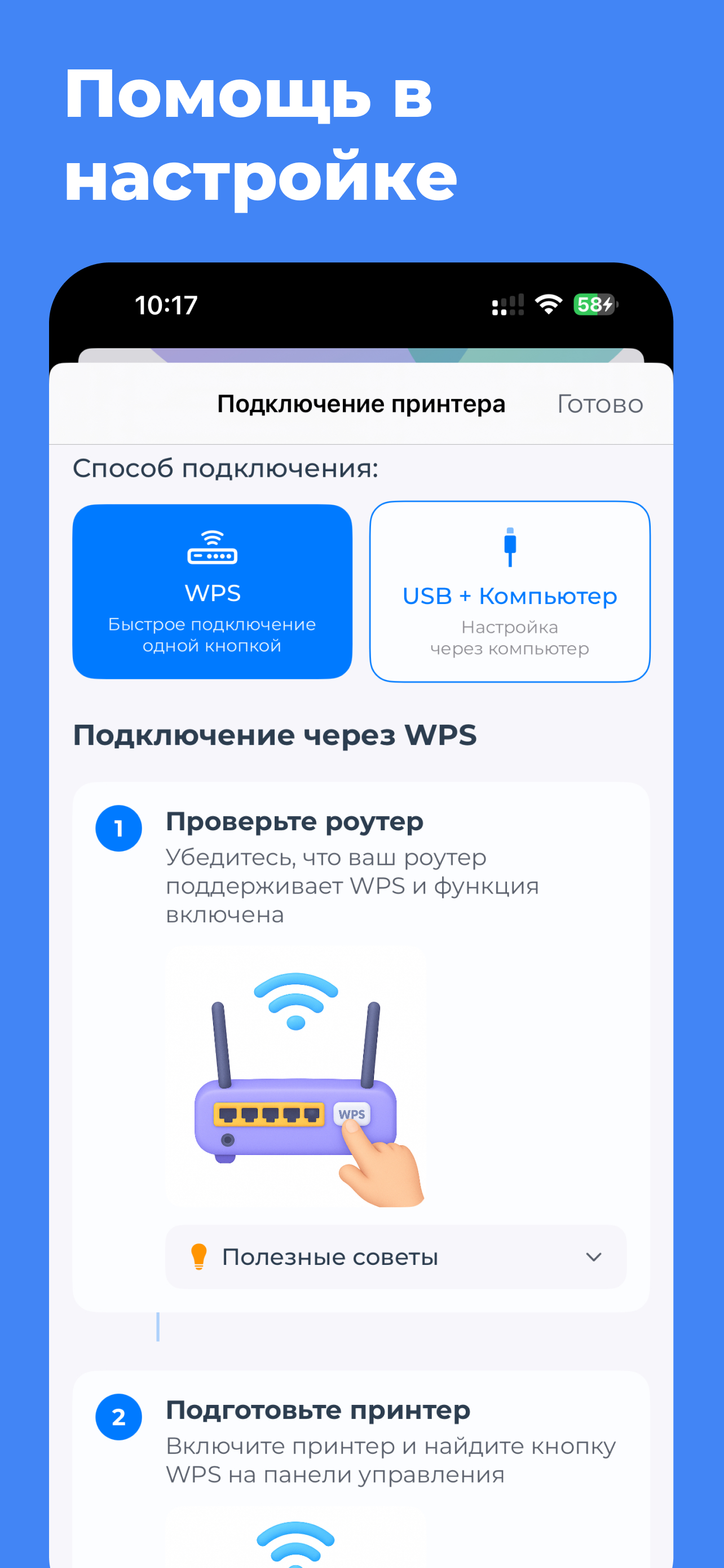 Приложение автоматически обнаруживает ваш принтер в вашей Wi-Fi сети.