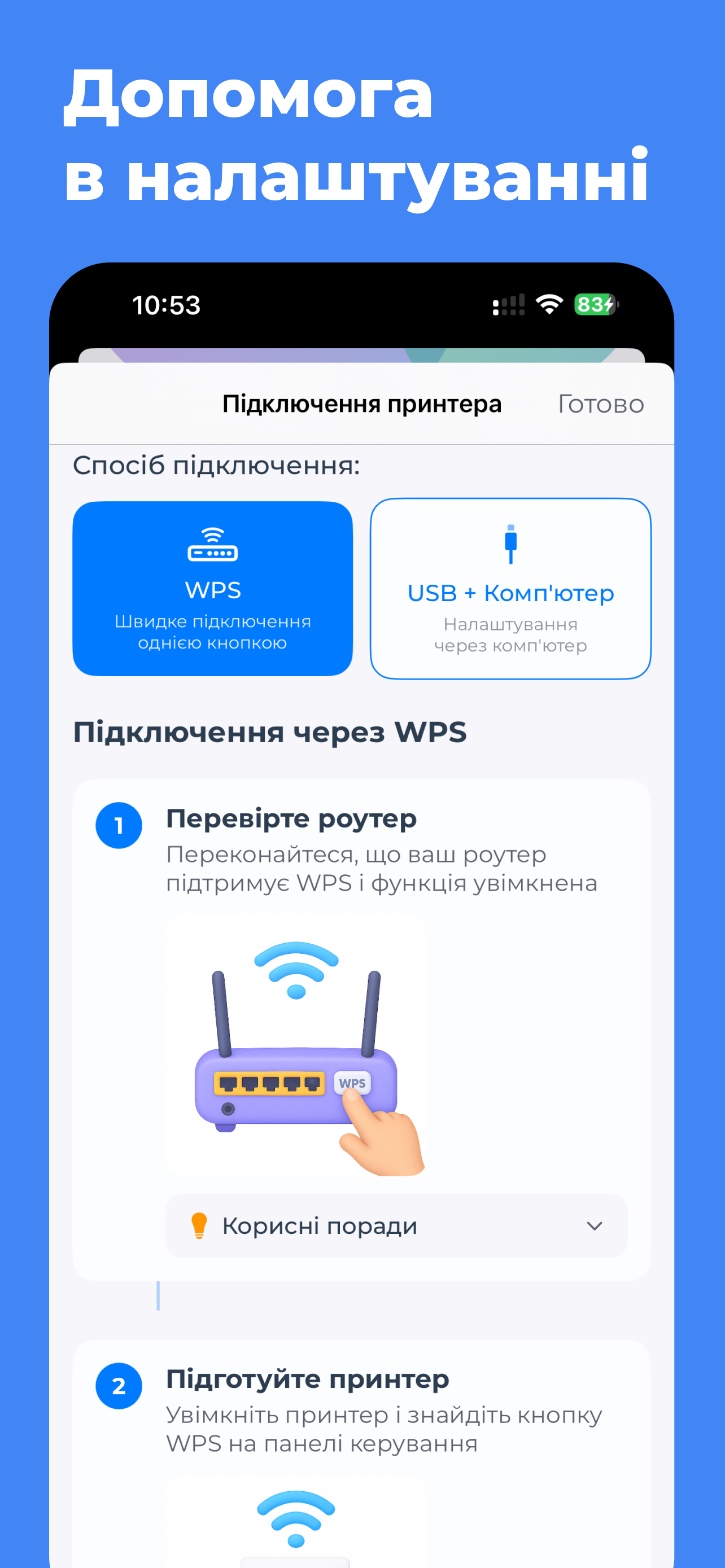 Додаток автоматично виявляє ваш принтер у вашій Wi-Fi мережі.